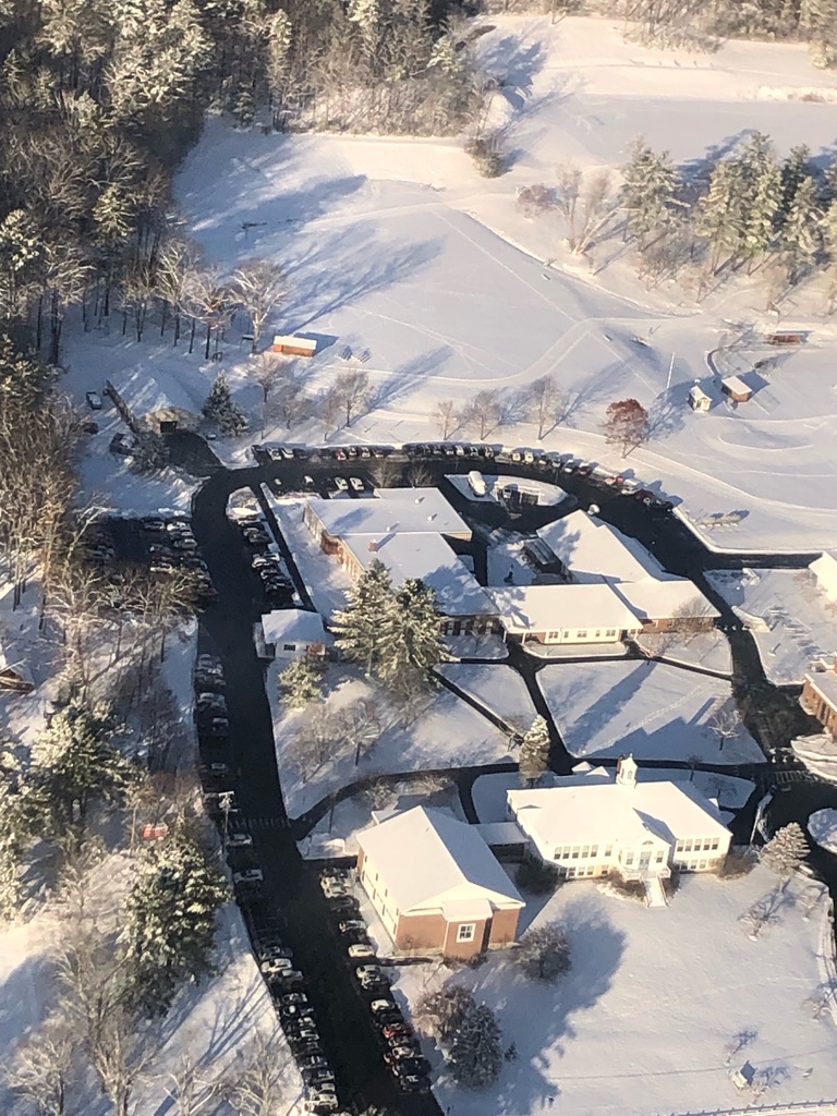 Featured photos this week: A few of this year’s gratitude cards, students taking advantage of our first ski trail days of the season, and a cool snowy overhead shot of campus (photo credit Kevin Brooker)