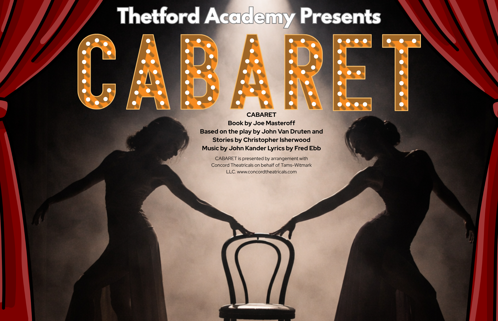 The Thetford Academy Performing Arts Department is proud to present the TonyAward-winning musical Cabaret, a bold and provocative production set in 1930s Berlin at the famed Kit Kat Club. Blending unforgettable music, dynamic choreography, and powerful storytelling, Cabaret explores themes of identity, resilience, and the societal shifts of a changing world.